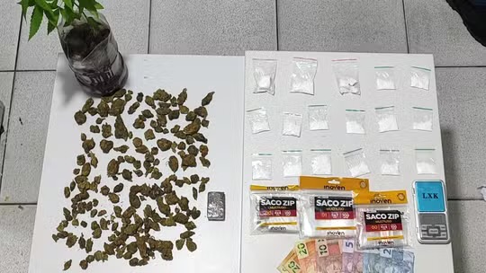 Na residência dele, a equipe encontrou uma sacola com mais droga, vários saquinhos contendo pó branco com características de cocaína, uma balança de precisão e uma muda de planta parecida com Cannabis sativa.