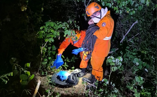 Diante das condições do terreno, foi necessária a utilização de técnicas de salvamento terrestre com utilização de cordas, garantindo o acesso seguro da equipe ao local e a retirada do cadáver.