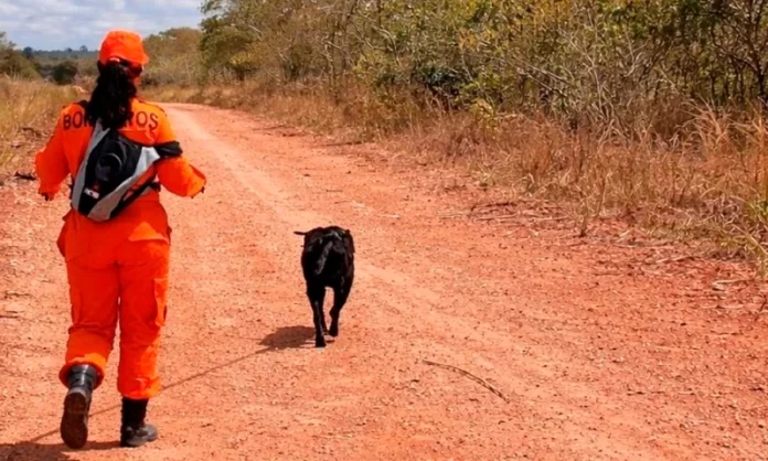 Com auxílio do cão farejador Thor, as equipes realizaram uma varredura na área de mata e localizaram o homem desaparecido já sem vida.