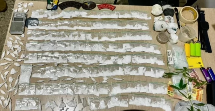 Na revista, foi encontrado com o suspeito um invólucro contendo cocaína. Em continuidade à ocorrência, os militares realizaram buscas no veículo associado ao homem, onde localizaram centenas de papelotes de cocaína já prontos para comercialização, além de porções de pasta base da mesma droga. Ao todo, o material apreendido soma aproximadamente meio quilo de entorpecentes.