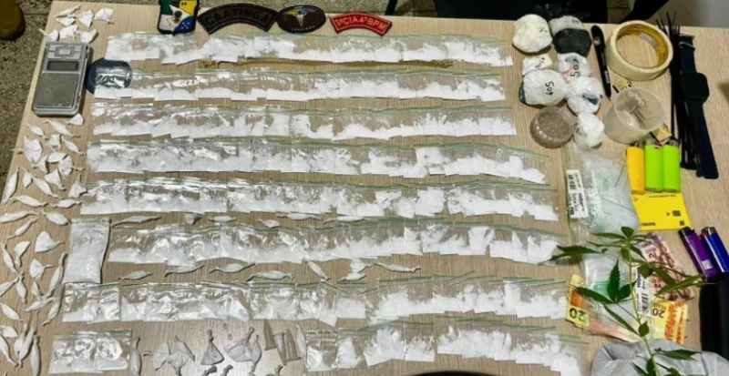 Parte da droga estava fracionada e identificada, o que, segundo a polícia, evidencia a prática de tráfico. Também foi apreendida uma quantia em dinheiro em espécie.